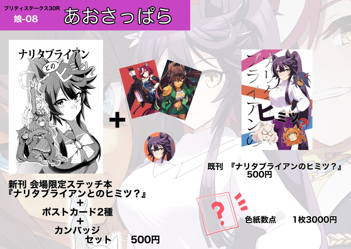 新刊はドレス勝負服が出来上がるまでちょっとスランプになるマヤノさんのマヤブラ漫画です B5/56P/800円(会場価格)#プリステ30R 通販ページ 🍈melonbooks.co.jp/detail/detail.… 🐯ecs.toranoana.jp/tora/ec/item/0…