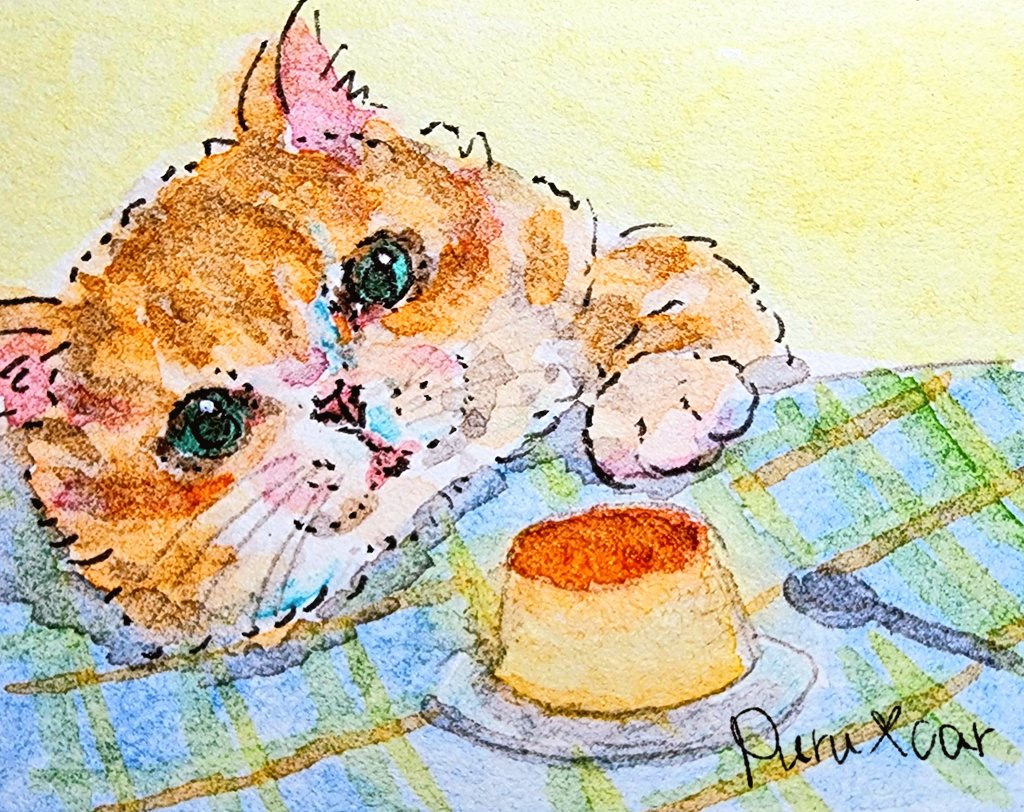 おはようございます。今日は25日、プリンの日。 ストロ「プリン大好き!いつも3時のおやつだけど、今日は特別だからいいよね☺️」 #プリンの日 #絵描きのたまご #みんなで楽しむTwitter展覧会