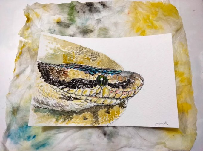 おはようございます☀ 今日も15分イラスト練習~ 「ヘビ」 だいぶ太ったヘビになりました😅 わたしを見ているよう…🤣 皆さん素敵な日曜日を✨ #ヘビ #イラスト #みんなで楽しむTwitter展覧会