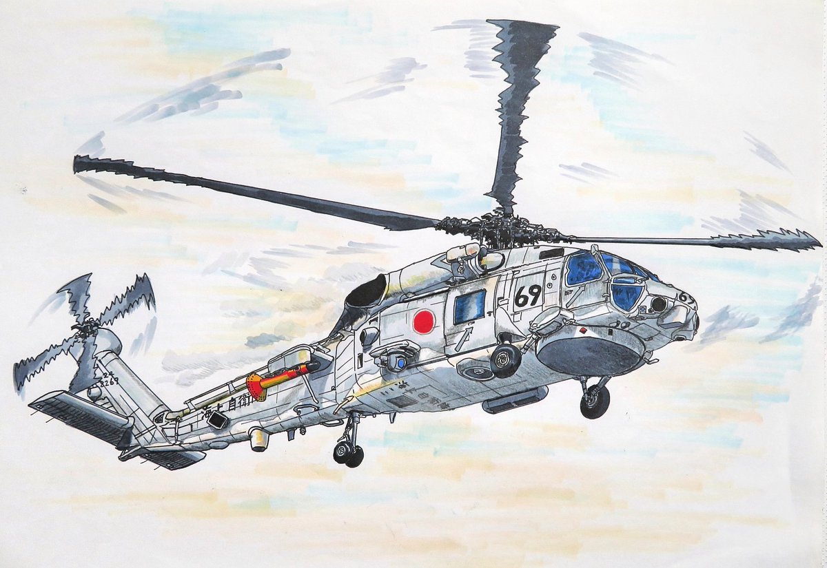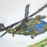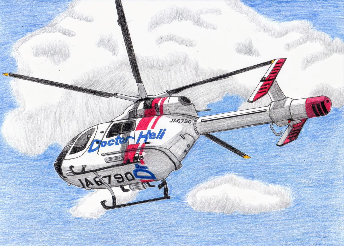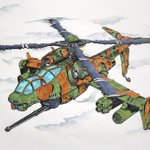 #一日一絵 #毎日絵一枚上げる #イラスト #色鉛筆画 #イラスト好きな人と繋がりたい #絵描きさんと繋がりたい #ヘリコプターの日 バトルヘリコプター 弾城が作った改造ヘリのプラモ 戦闘メカとヘリコプターを混ぜたもの 変形可能で後にバトルヘリGが作られた