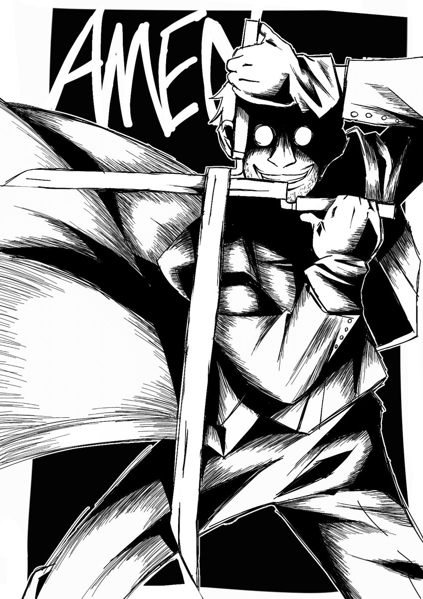 【主は来ませり】 ヘルシングからハインケルのファンアートです。 平野先生、たいへん申し訳ございませんm(_ _;)m #二次創作 #ファンアート #ヘルシング #hellsing #平野耕太 #イラスト #絵描きさんと繫がりたい #春の創作クラスタフォロー祭り