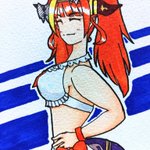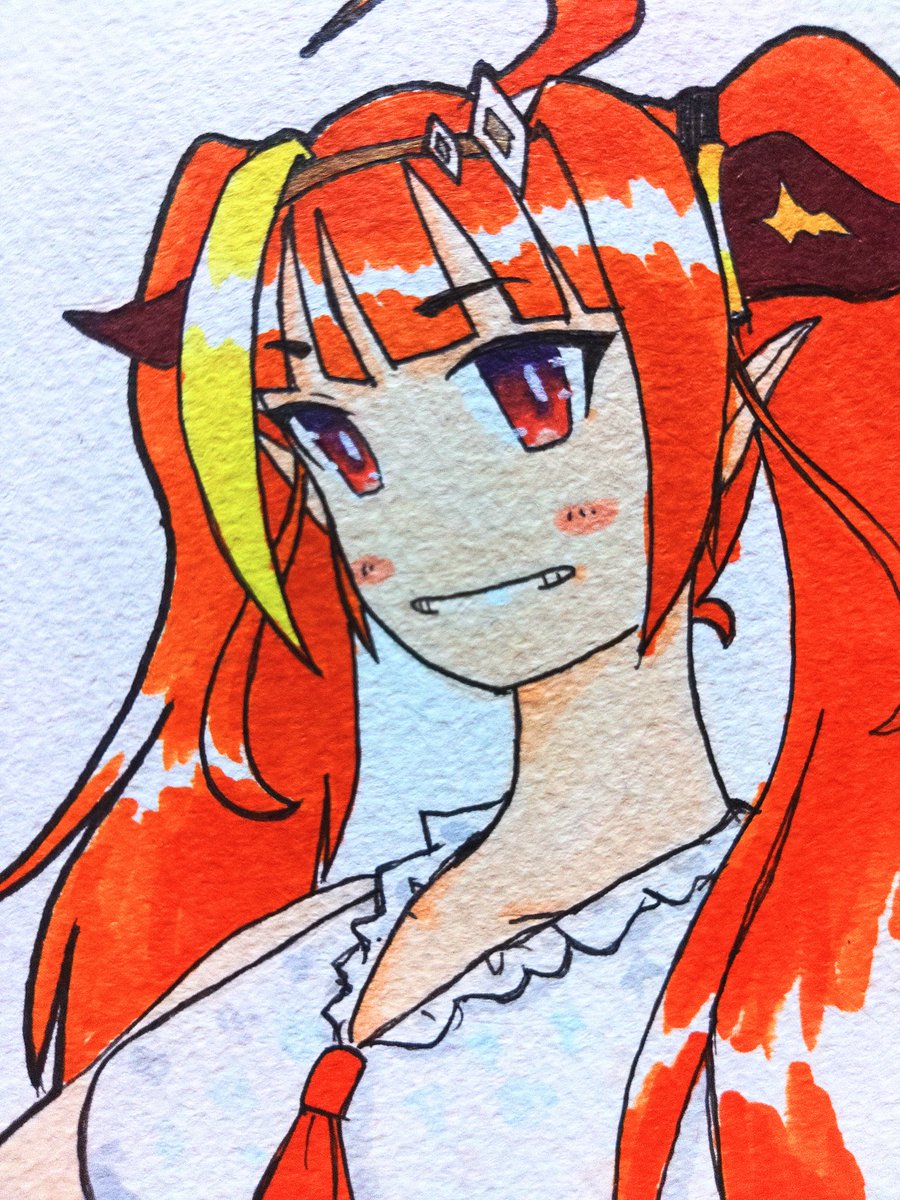 #みかじ絵 #ホロライブサマー2022 この間のリベンジで会長をもう一枚描きました♪今度は下の方まで入る構図にしました。そうしたら、腕のヒラヒラを描き忘れたという事をアップ直前に気がつきました(涙)。またも不完全(苦笑)。三度目の正直を描くかは悩み中(笑)。