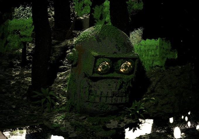 A ruined head 🎉 Finally it's completed and pretty much same like in mind 🎨 This literally look 2 weeks 😤 and lots of breaks, lost the way and yet had to complete it by making additional trees and other asserts also, #Voxelart #ボクセル #artistsontwitter