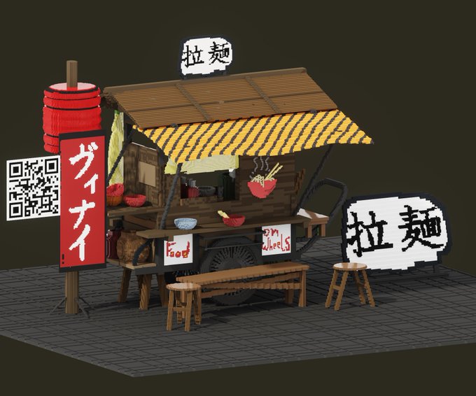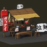 Japanese Yatai ramen stall 🍜 GM artists To everyone artist trying his best day and night, sometimes it's better to take breaks here and there with a cup of ramen 😌🍜 Don't forget to scan and follow 😉😉😉 , #Voxelart #ボクセル #magicavoxel