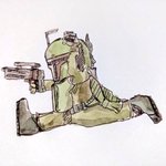 【伊吹の一日一絵】 2021年12月15日 1137絵 「ボバ・フェット」 人物を模様で表現しようとした時 アウトラインは作らず 線の向き、流れ、ベタを使う などで区別しながら描いています ボバ・フェットに見えますか? #絵描きさんと繋がりたい #映画好きと繋がりたい #スターウォーズ #ボバフェット