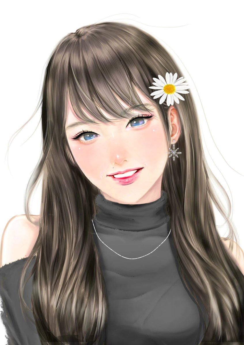 完成です⋆⸜💡⸝⋆❄️☀︎.° モデルは、ななさん@nana_partner バージンヘアー黒髪ロング❤︎"の大学生でポートレートモデルをされてます( ¨̮ )🕊 𓂃𓈒 𓂂𓏸🤍𓈒𓂂⋆͛🐇𓂃𓈒 𓂂𓏸🤍🕊 𓂃 #イラスト #イラスト好きな人と繋がりたい #ポートレートモデル #雛菊