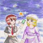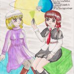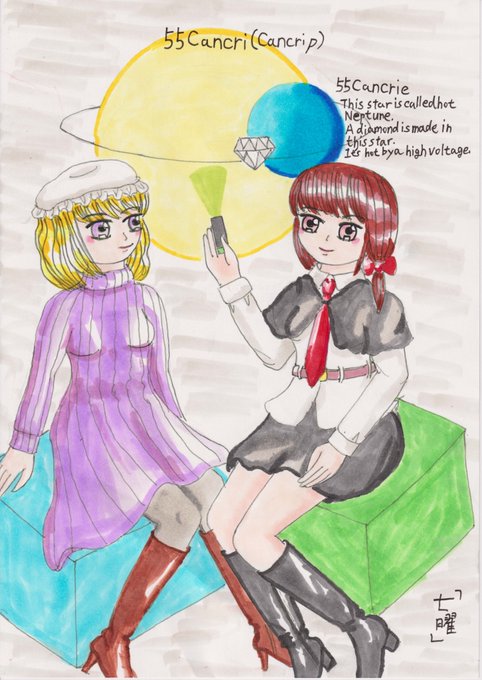 何処でもプラネタリウム・「メリー知ってる?宇宙にはダイヤモンドで出来た星が有るのよ」「何て言う星なの?」「地球から41光年離れた所に有るかに座55番星eという星よ。でも超高圧/高温の星なのよ。」 #東方の90分お絵描き #宇佐見蓮子 #マエリベリーハーン #秘封倶楽部 #かに座55番星
