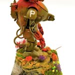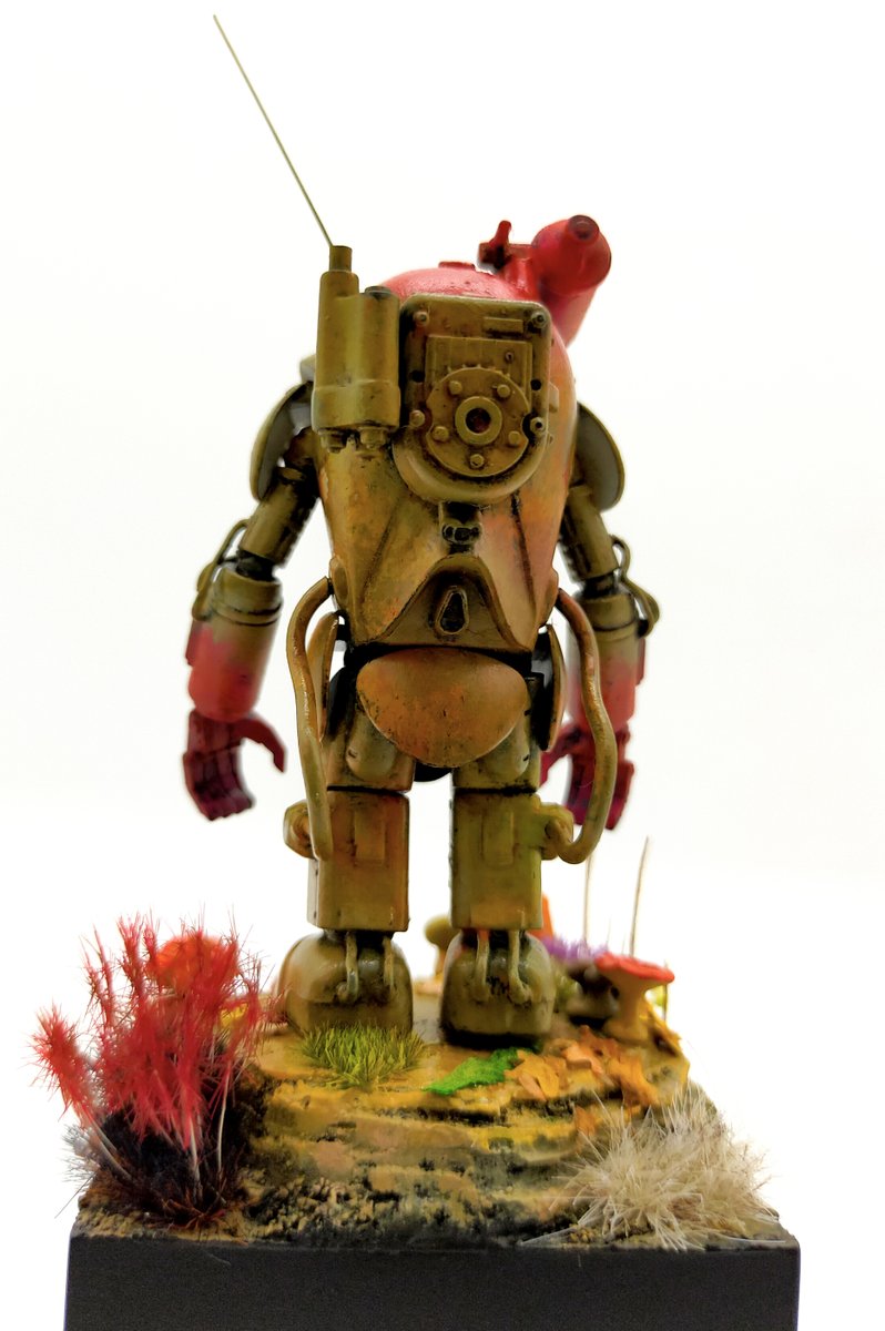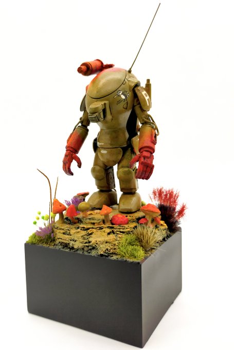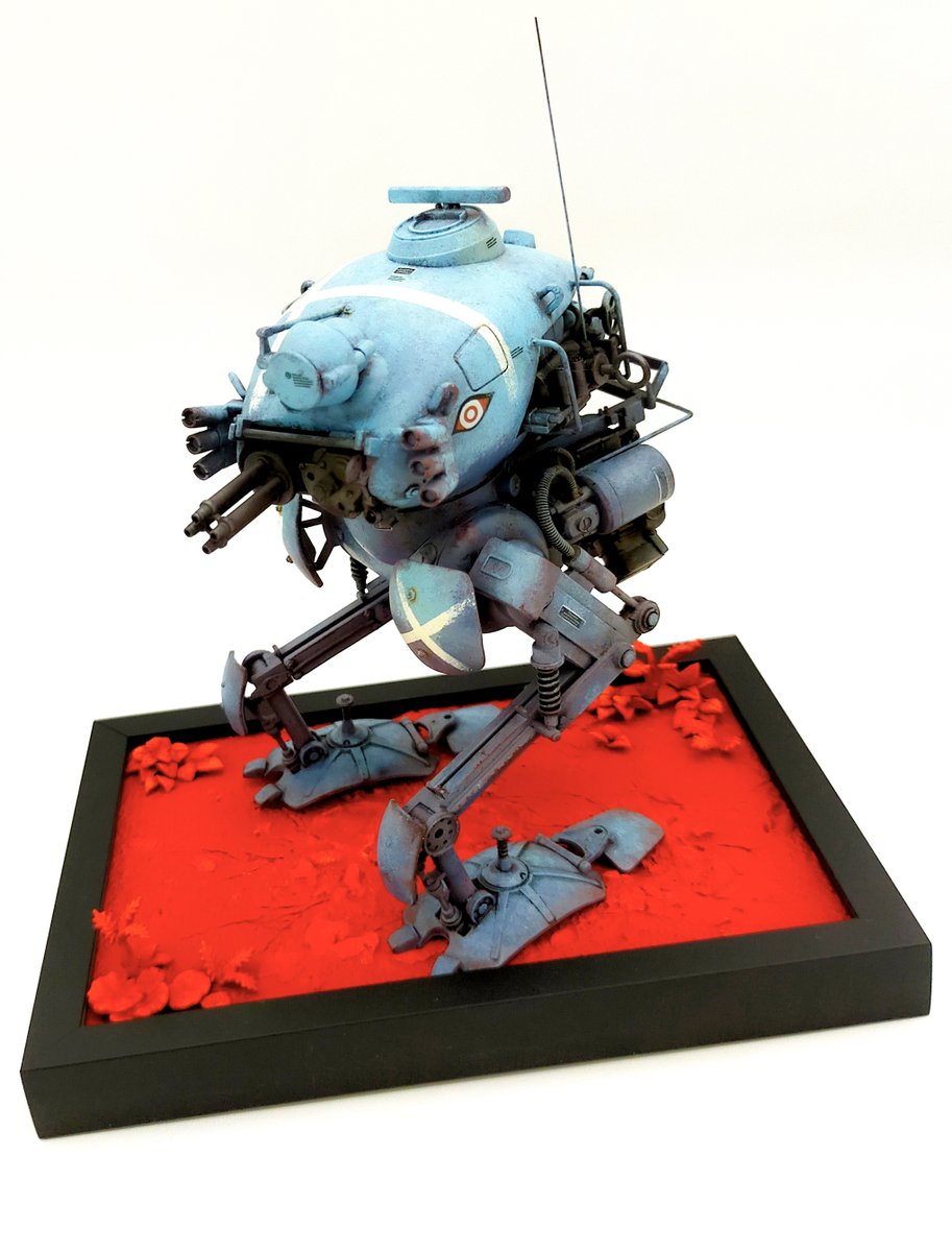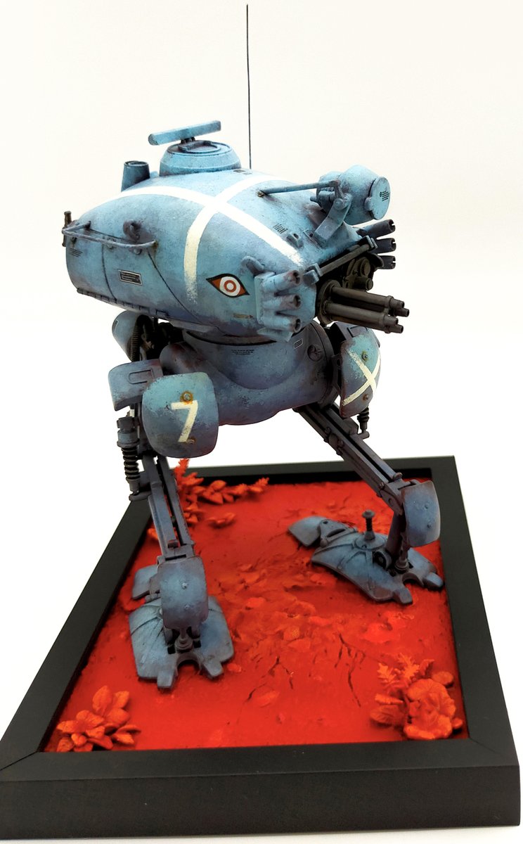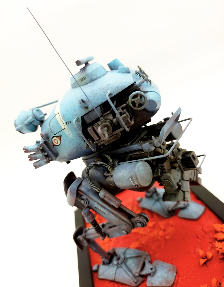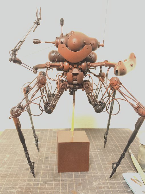 海洋堂のキュスター1機完成ッ 装甲を単色にしたんで、変化を付けるために上から下にかけてトーンを暗くして塗ってみたり 手乗りサイズで気軽に塗るのに丁度イイ あとカワイイ! #マシーネンクリーガー