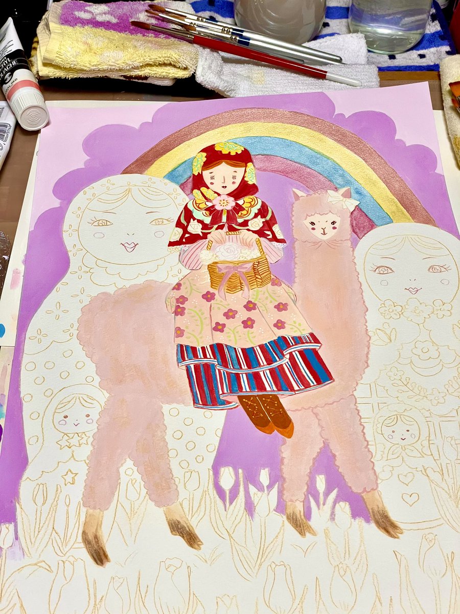冬の展示用色ラフです(F10 540×465mm)。ピエロマトリョーシカ🪆🤡🎪がアングラみを醸してしまいましたが、丁寧に仕上げたいと思います。色ラフはメディバンぬりえで作成。 #アート #wip #WorkinProgress #ContemporaryArt #色ラフ #制作途中 #マトリョーシカ #サーカス