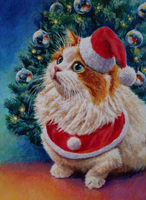 #メリークリスマス 🍰🍗🎄🎁 #マンチカン #サンタクロース #クリスマスイラスト #絵描きさんと繋がりたい #猫好きさんと繋がりたい #アナログ絵 #アクリル画 ケント紙にアクリル絵具、サイズA4