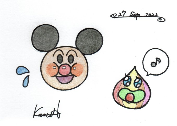 これあかんヤツ💦 (2歳の姪っ子が好きなものをいっぺんに描いただけ🤪) #イラスト #オリジナルイラスト #一日一絵 #イラスト好きさんと繋がりたい #絵描きさんと繋がりたい #ベイビーオニオン #アンパンマン ? #ミッキーマウス ?