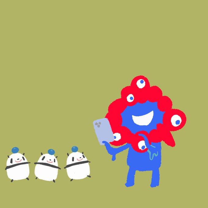 今日の通勤お絵描き🎨#ミャクミャク様 片足立ち可愛かったから、うちの子 #シアン・ハーティー もマネっ子😆♪ ミャクミャク様カワイイよぉ(*´ω`*)♪ ちゃんといつもの絵より、ちょっと多めに輝かせといた🌟 #絵柄が好みっていう人にフォローされたい