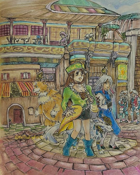 ミンサガはフィールドマップも凄い🗺️ 個性豊かな古今東西の街並みが好きです! 人が行き交う世界に初めて触れたクローディアもプレイヤーと同じく驚きと感動の連続だったのではないでしょうか。 リマスター版はパッと行く機能がありますが、たまに歩いてみるのもお勧めです! #ミンサガファンアート