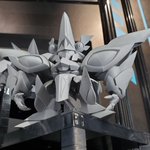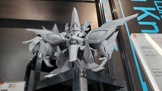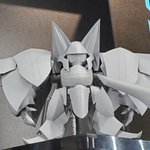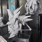 アルマノクス見てきた。良かった….。 この2騎以外も大半の展示はまだ出力品そのままで可動や分割や細部の造形も入ってないけど、裏を返せば更に造形が進化した物が出るということ…! 全高は思ったより大きくてホワイトリリーで兜の先までいれたら12~13センチくらいあるかも。 #メカスマインパクト