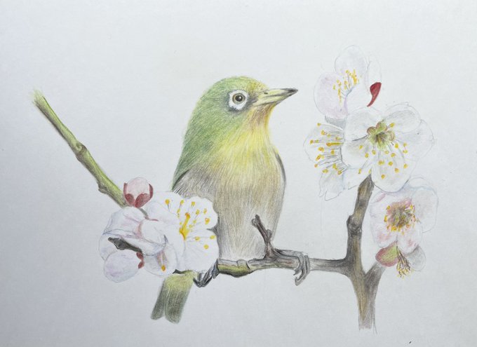 「桜の季節」 #イラスト #さくら #メジロ #Adobeフレスコ #Frescoイラコン #桜 #春 「The Season of Cherry Blossoms」 #illustration #CherryBlossom #Spring #AdobeFresco #bird #whiteeye