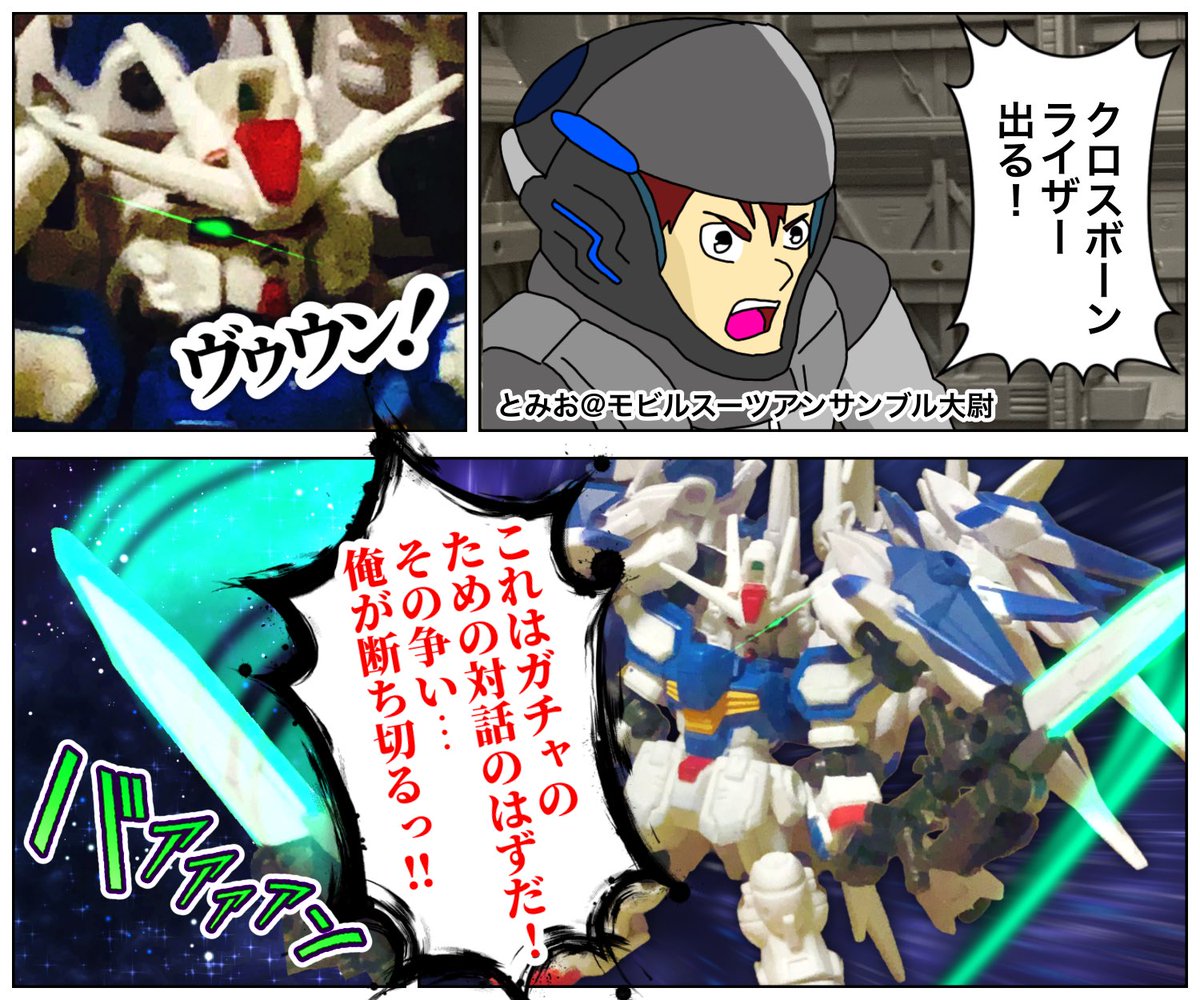 MSEガチャストーリー -第22話-エックストランザム 援護に駆けつけてくれたのは @tomio_tdo とみお @モビルスーツアンサンブルさんと 参戦機体「クロスボーンライザーGP003S」 #みんなで楽しむTwitter展覧会 #モビルスーツアンサンブル
