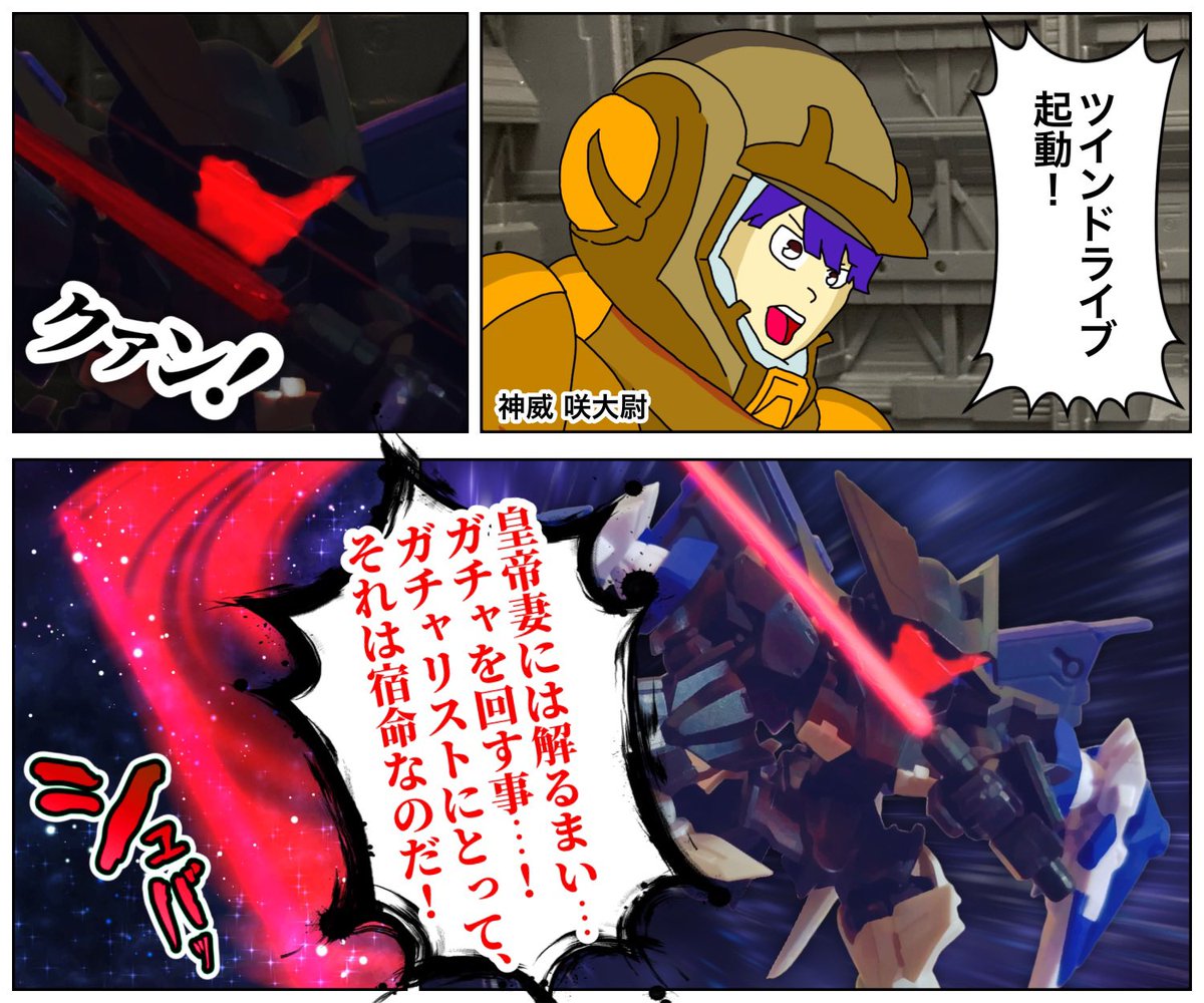 MSEガチャストーリー -第25話-二基の太陽炉 援護に駆けつけてくれたのは @celesphere_rose 神威 咲さん 参戦機体「GNフラッグ・ツインドライブカスタム」 #みんなで楽しむTwitter展覧会 #モビルスーツアンサンブル
