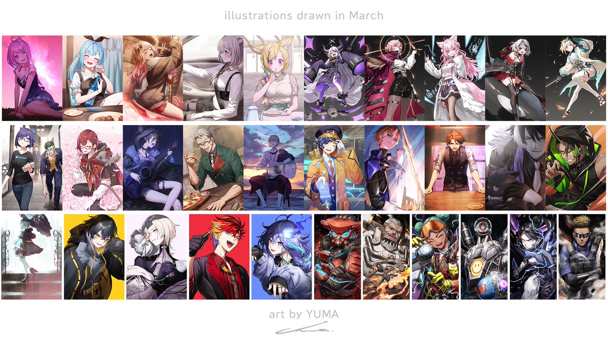 #今月描いた絵を晒そう これ・・・年間とかじゃなくて2月分です🧐 あと100日チャレンジ中のハッシュタグ作ったので、よかったら #ユウマ100日チャレンジ を付けて感想とかくれたら嬉しいです