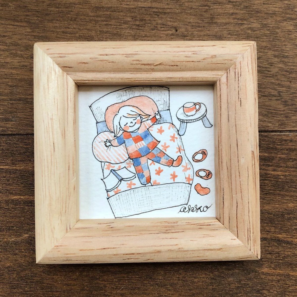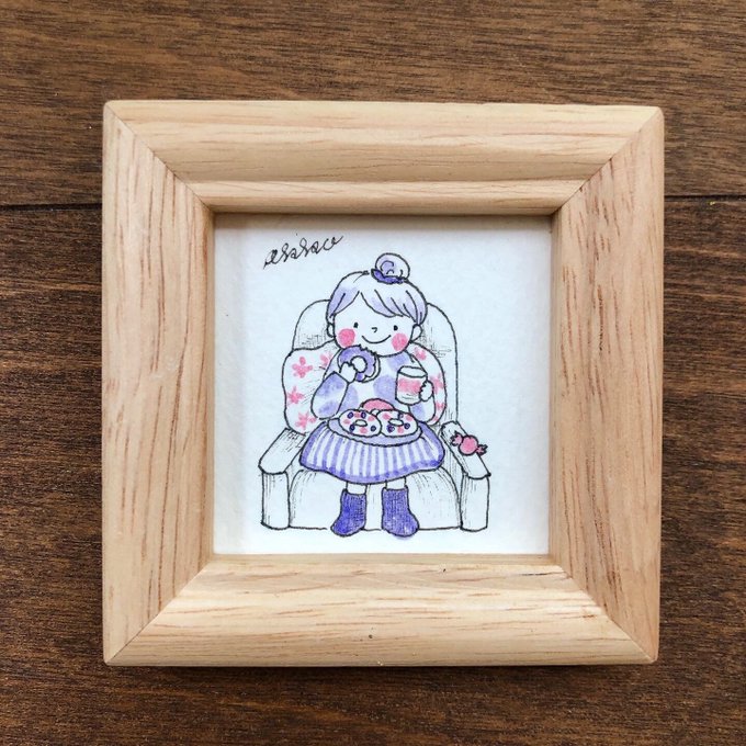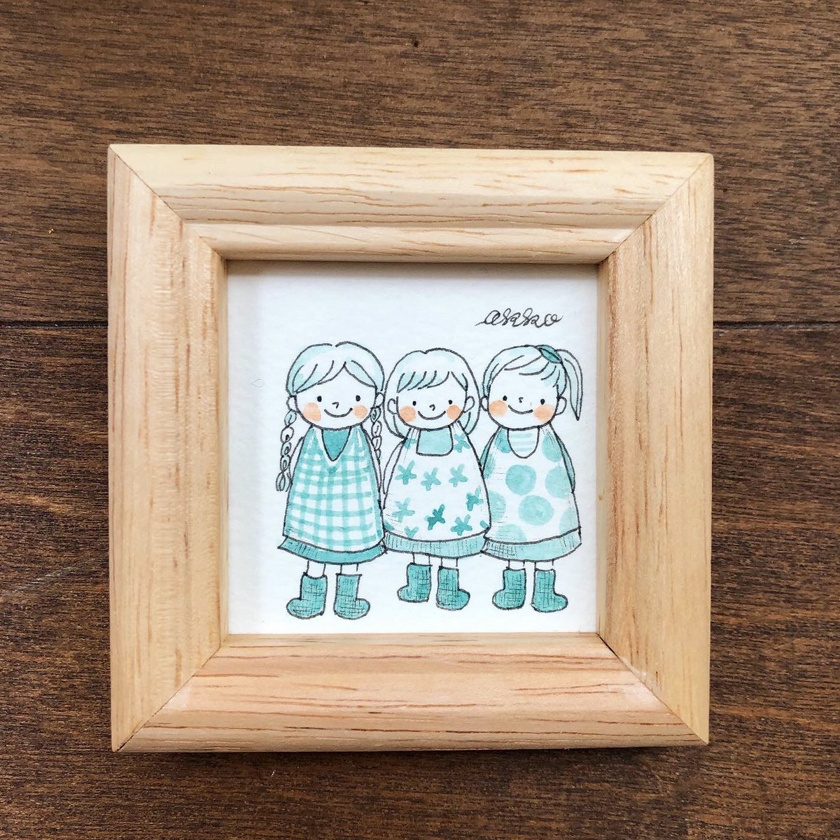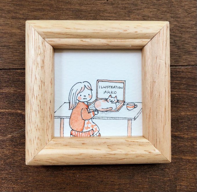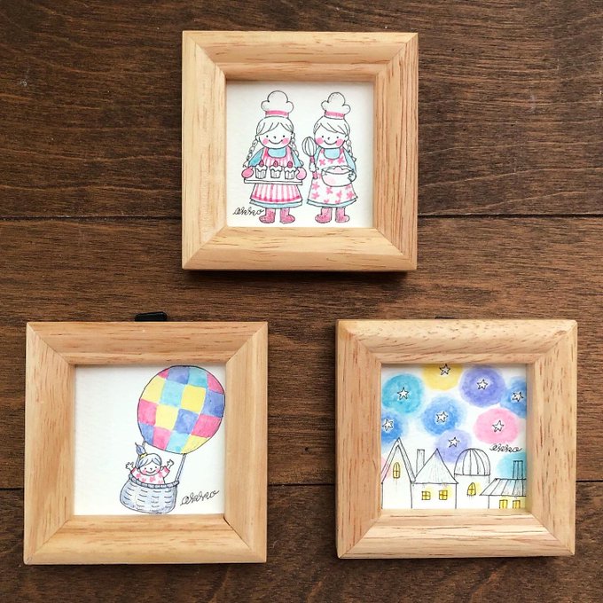 ヨコハマハンドメイドマルシェで販売予定の「ミニ額〜いろんな子シリーズ」!まだまだたくさんあります😊 *テレワーク *3姉妹 *休日のわたし #ヨコハマハンドメイドマルシェ #イラストレーター #illustrationakko #村上暁子 #イラスト #水彩 #ドローイングペン