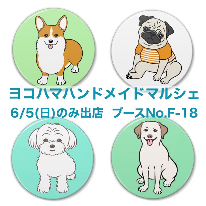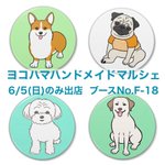 #chippokeイベント #ヨコハマハンドメイドマルシェ 2022年6月5日(日) のみ出店 11:00~18:00 パシフィコ横浜 B・C・Dホール ブースNo:F-18 缶バッジです。 他にもたくさんご用意していますよ。 皆様にお会いできるのを楽しみにしています! #缶バッジ #犬イラスト #犬グッズ