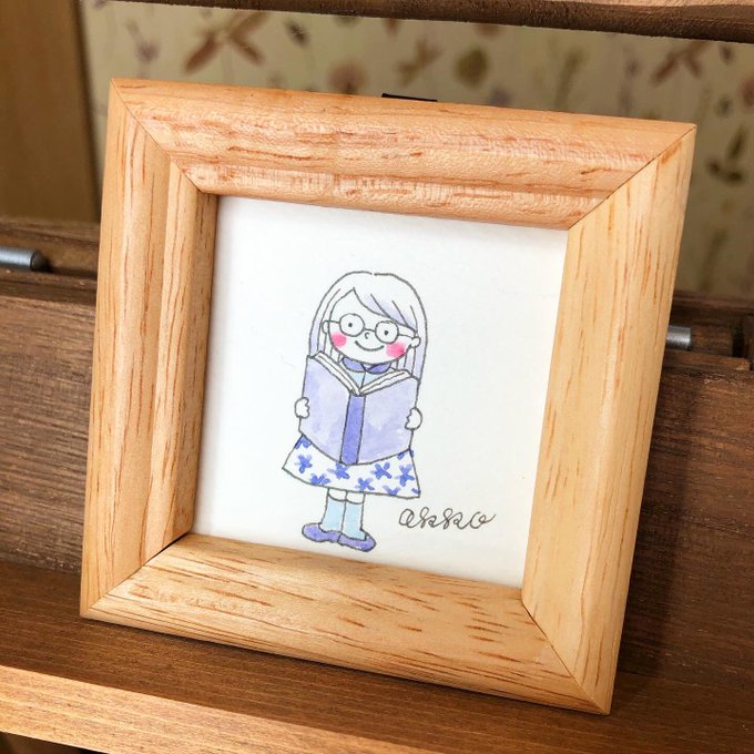 ミニ額原画、いろんな子シリーズ。 読書好きめがねさん👓 #めがね #illustrationakko #イラスト #イラストレーター #原画 #水彩 #読書好き #ヨコハマハンドメイドマルシェ