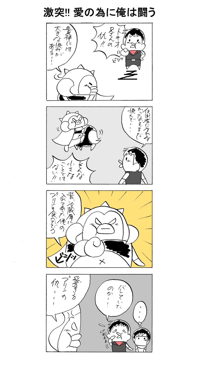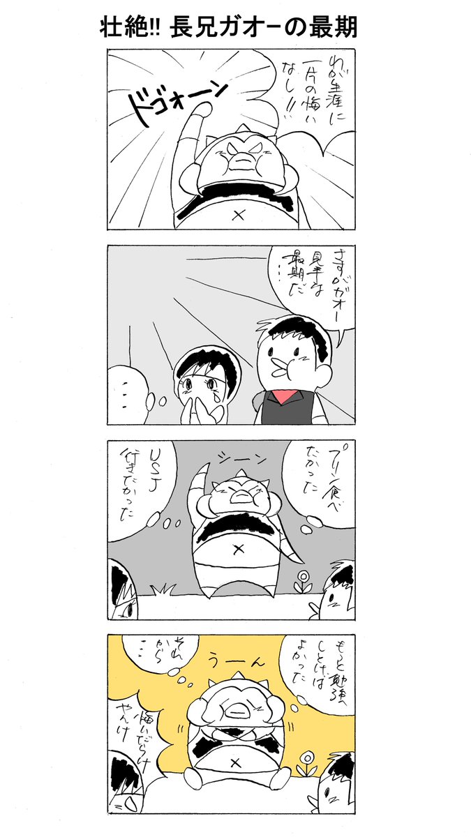 #漫画家志望さんと繋がりたい #漫画好きな人と繋がりたい #漫画が読めるハッシュタグ #四コマ漫画 #4コマ #四コマ #漫画 #マンガ #北斗の拳 #ケンシロウ #ラオウ 北斗の拳っぽい4兄弟の熱き戦いとゆるい日常を描いた脱力系世紀末格闘4コマ漫画「ほくとのケン坊」【第15話:壮絶!長兄ガオーの最期】