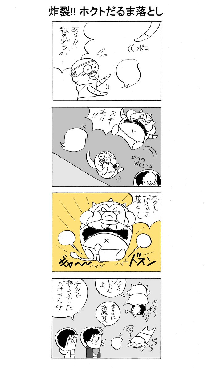 #漫画家志望さんと繋がりたい #漫画好きな人と繋がりたい #漫画が読めるハッシュタグ #四コマ漫画 #4コマ #四コマ #漫画 #マンガ #北斗の拳 #ケンシロウ #ラオウ 北斗の拳似の4兄弟の熱き戦いとゆるい日常を描いた脱力系世紀末格闘4コマ漫画「ほくとのケン坊」【第12話:炸裂!ホクトだるま落とし】