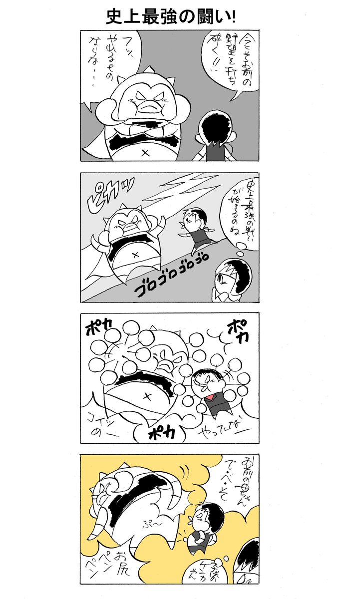 #漫画家志望さんと繋がりたい #漫画好きな人と繋がりたい #漫画が読めるハッシュタグ #四コマ漫画 #4コマ #四コマ #漫画 #マンガ #北斗の拳 #ケンシロウ #ラオウ 北斗の拳似の4兄弟の熱き戦いとゆるい日常を描いた脱力系世紀末格闘アクション4コマ漫画「ほくとのケン坊」【第14話:史上最強の闘い!】