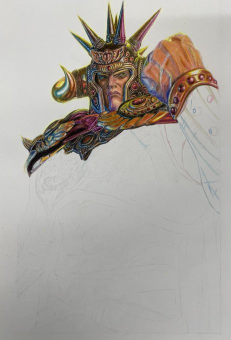 北斗の拳 ラオウ 途中経過4😆 なんとかいけそうな気がします〜🤗 #色鉛筆画 #イラスト好きと繋がりたい #絵描きさんと繋がりたい #みんなで楽しむTwitter展覧会 #北斗の拳 #ラオウ