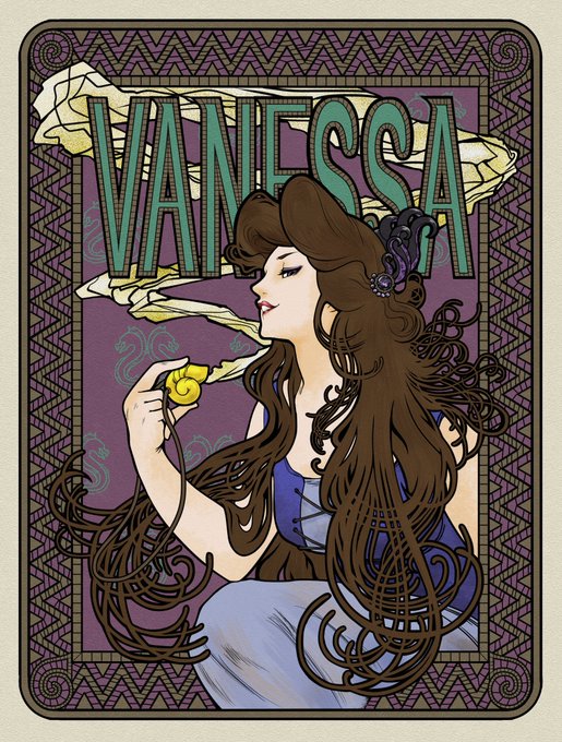 スクリーンデビュー、アリエルじゃなくてヴァネッサなんだけど・・・リトマメスクリーンデビューおめでとう!!!🧜♀️💕 アルフォンス・ミュシャ作品「JOB」ポスターオマージュでお祝い! #リトルマーメイドスクリーンデビュー