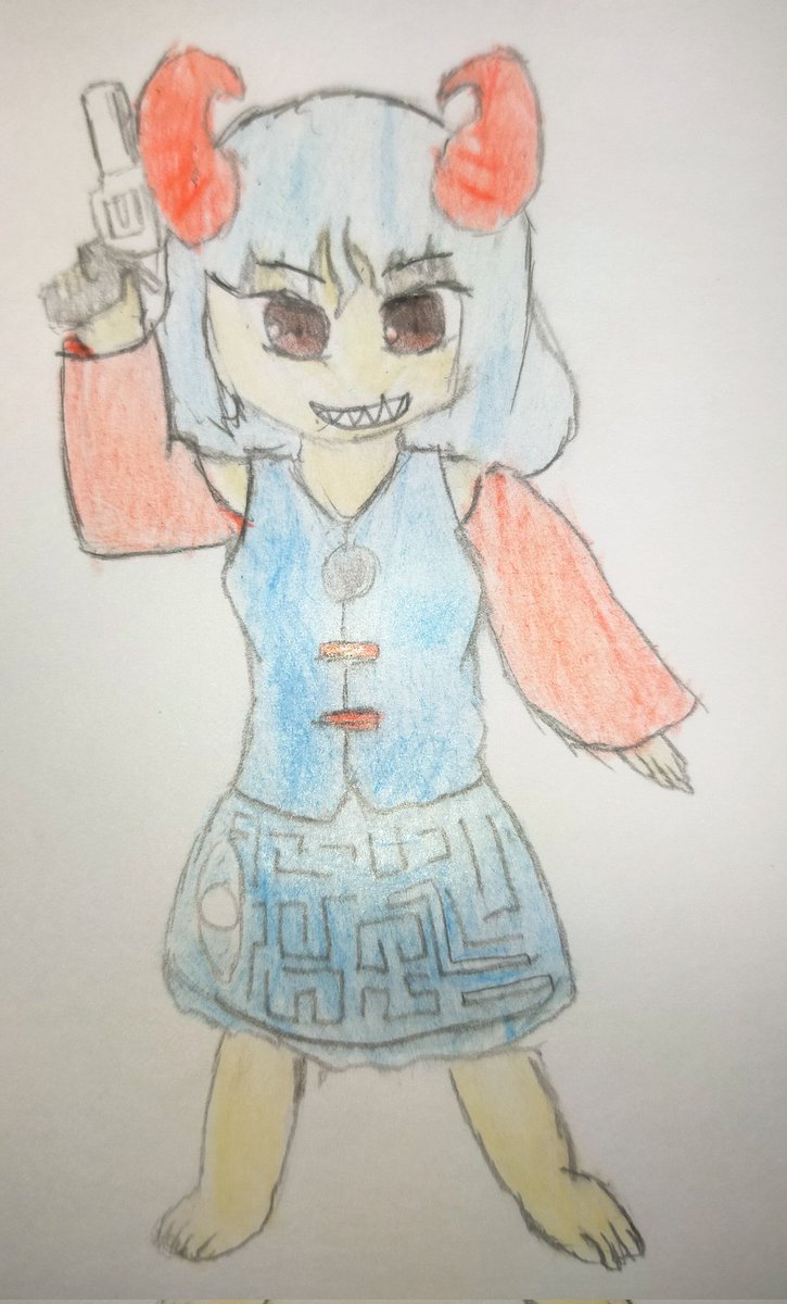 饕餮さん 手に持ってる銃はトーラス・ジャッジという散弾が撃てる五発装填できるリボルバーでございますByにとり #東方Project #東方剛欲異聞 #饕餮尤魔 #リボルバー #トーラス・ジャッジ #深夜の真剣お絵描き60分一本勝負