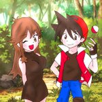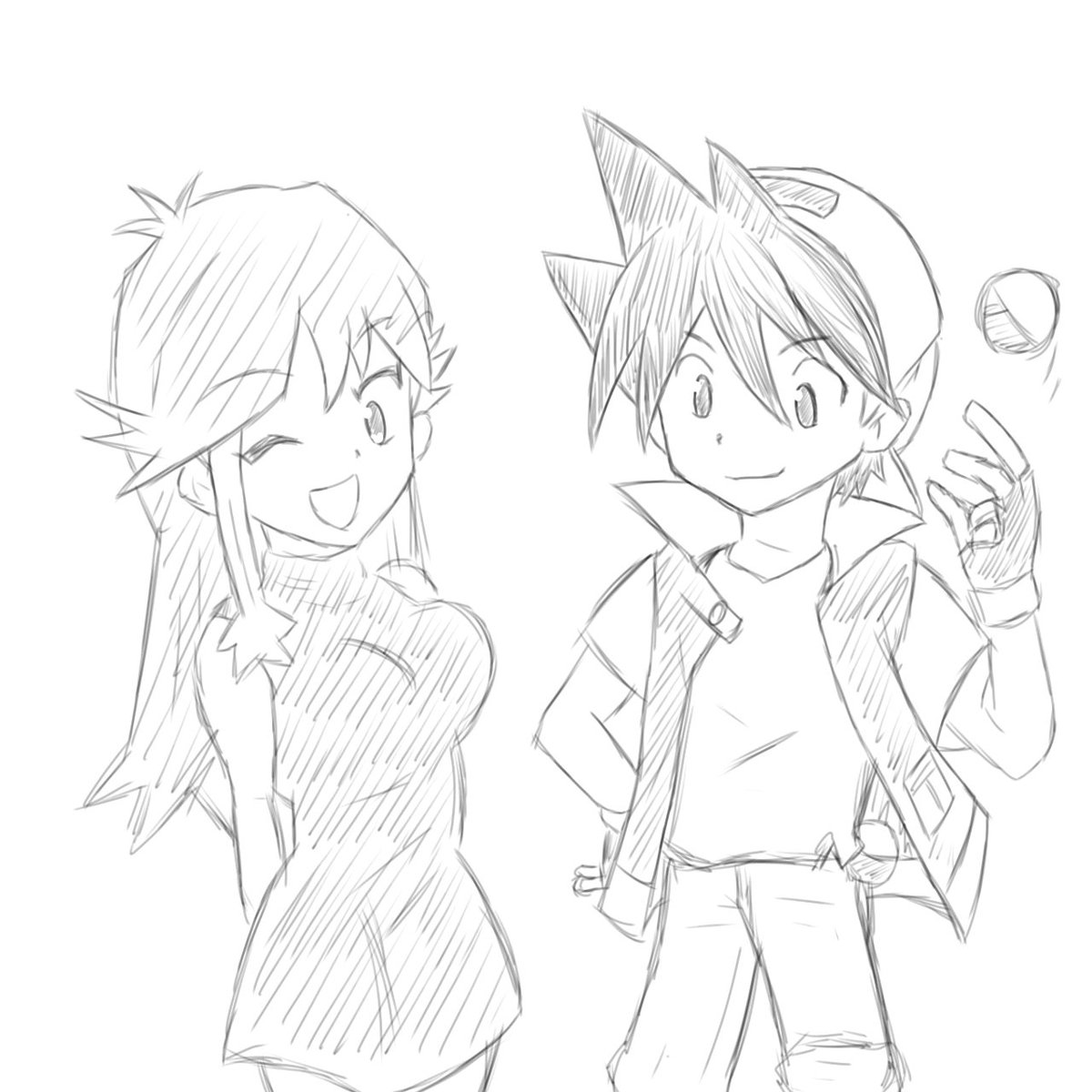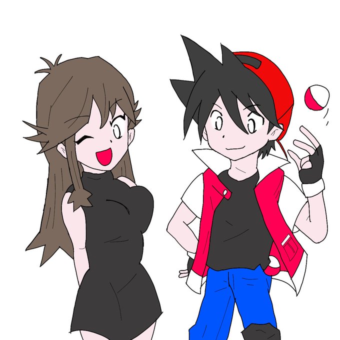 トキワの森感を出したくてアイビスの背景素材をはじめて使いましたよっ #イラスト好きな人と繋がりたい #みんなで楽しむTwitter展覧会 #Twitter交流会会場 #ポケスペ #レッドブル #ポケモン