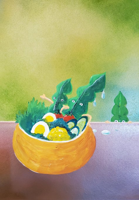 「いざ、サラダ🥗」😀 (いざ~さらば~🎵) 「アホ毛は尊し、歌ってもあまり違和感がない件」 #終演 #誰か歌ってみて #歌入って完成 #アートだねぇ #拡散RT希望 #イラスト #Japaneseart #芸術の輪 #Twitter交流会会場 #初夏のカラフル芸術祭 #みんなで楽しむTwitter展覧会 #オリキャラ #ワカメ