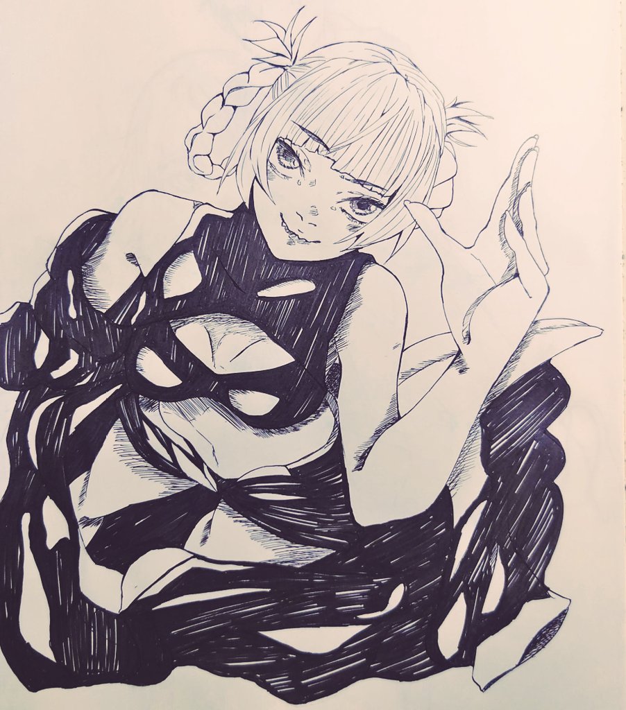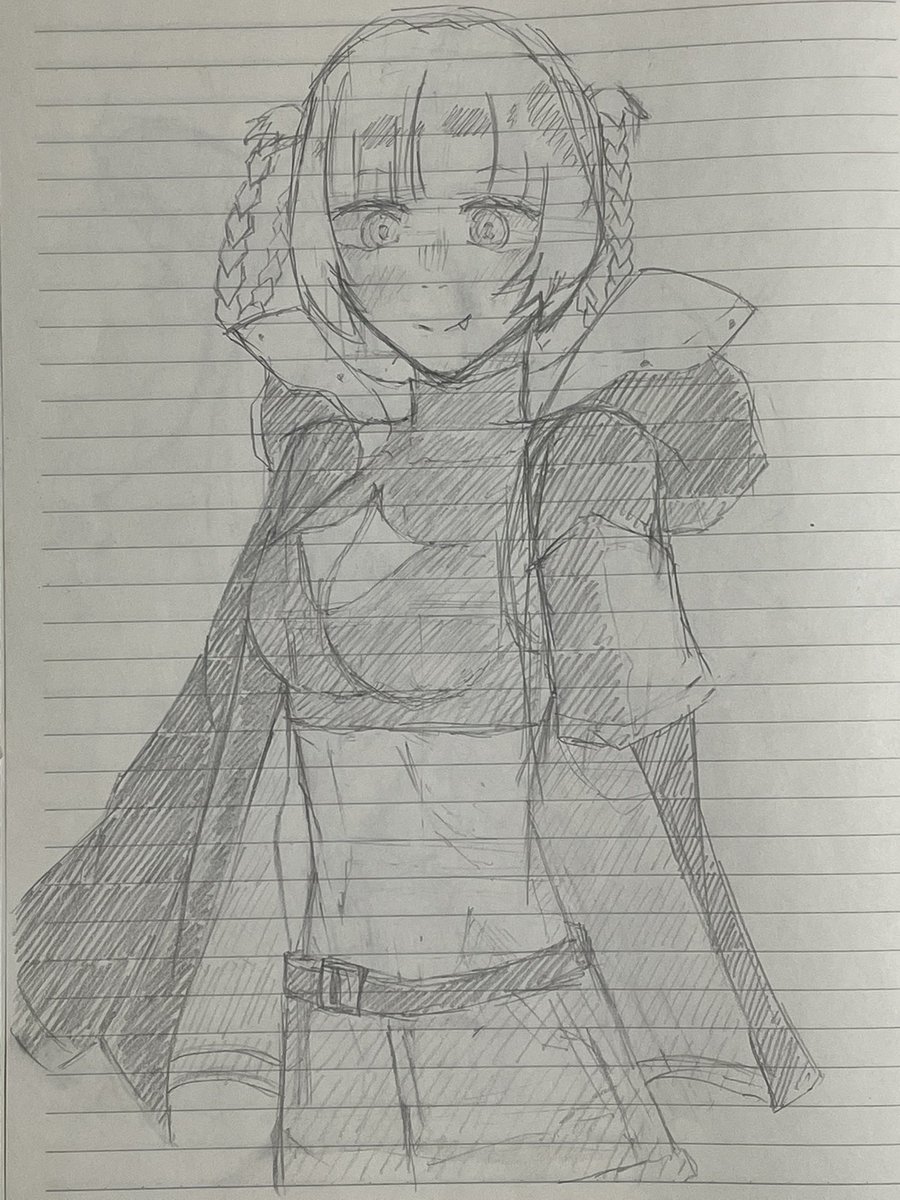 コピック高いし買いに行くのめんどくさいのでシャーペンで影塗り #よふかしのうた #七草ナズナ #ナズナちゃん #よふかしのうたイラスト #モノクロ #イラスト初心者 #イラスト練習 #イラスト好きさんとつながりたい