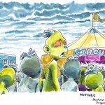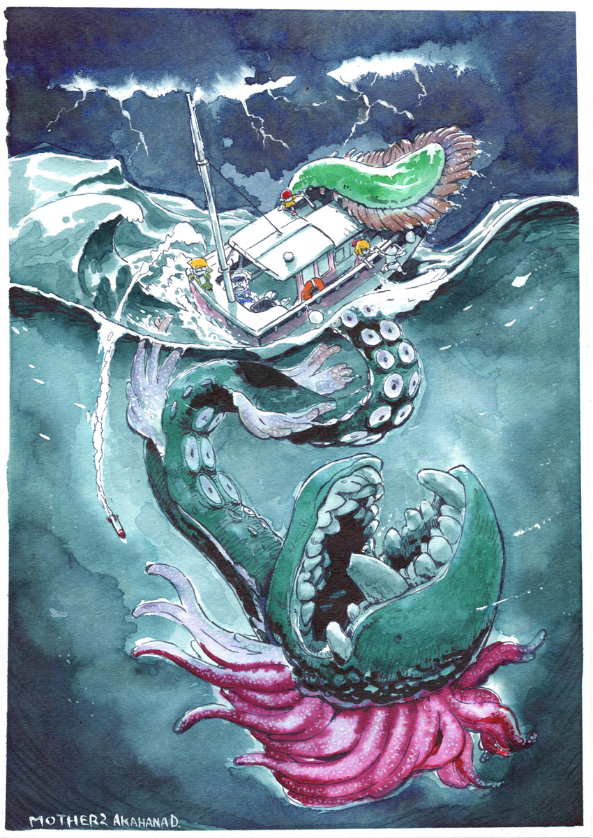 もう(ブクブク)何もみ、見えないよ(ブクブク) あろうことか、某少年のシマシマを描き忘れてたので、 描きたしアップしなおし.... 前のをシェア&いいね!していただいた方 申し訳ありません!😅 #MOTHER2 #EathBound #万年筆イラスト