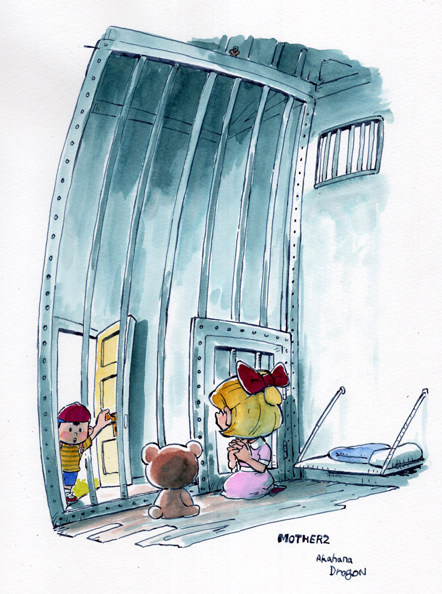 その7 MOTHER2絵をアナログで描いてて 細かい所を描く時 自分の目が悪くなってることに気がつきましたw #アカハナMOTHER絵まとめ #MOTHER2 #EarthBound #万年筆イラスト
