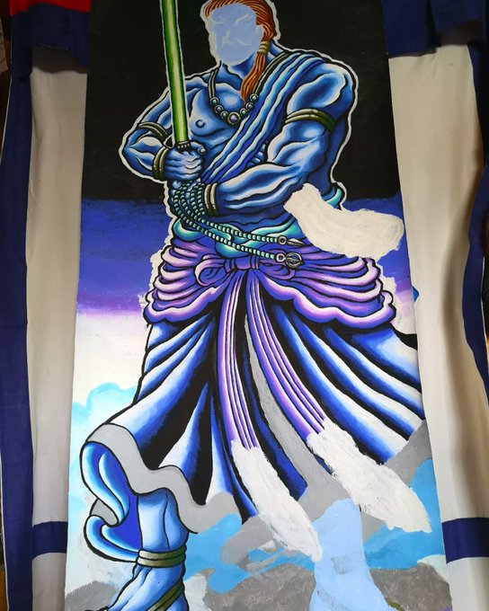 先日ついに完成した不動明王の依頼絵(縦120幅50) ご住職も大変満足して頂けたようです! 来週依頼主の光浄寺に持っていきます🙇 #絵描きさんと繋がりたい #イラスト好きな人と繋がりたい #仏画 #不動明王