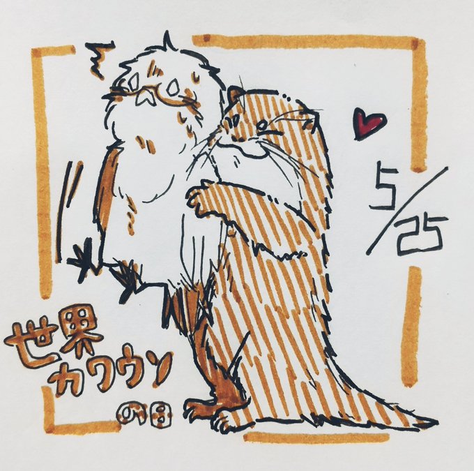 今日は #世界カワウソの日 なので久しぶりにかわうそ店長を描いてみたよ!今も元気にピザ屋…じゃなくて自転車屋をやっているらしいです。地味に #まわるドーナツと金曜日 ともコラボ。 #かわうその自転車屋さん