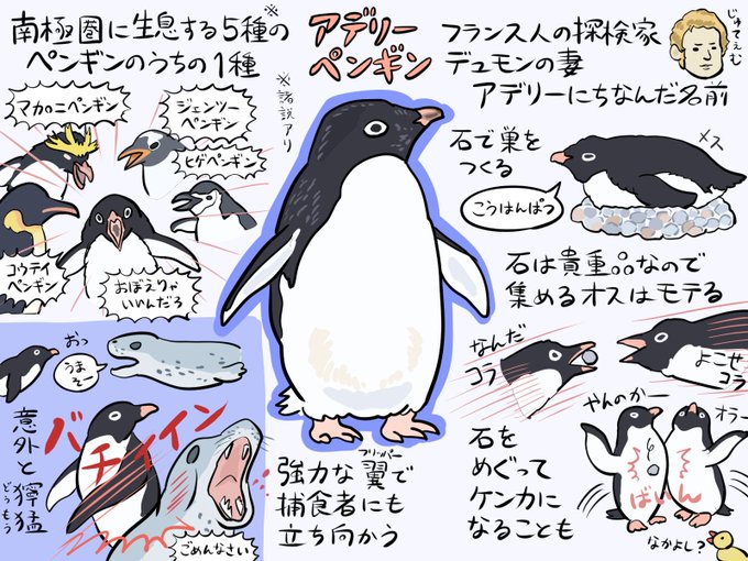 本日4月25日は「世界ペンギンの日」! 南極基地で、毎年この時期にアデリーペンギンが姿を見せることに気づいた研究者が、ペンギン啓蒙のため取り決めた記念日だそうです。そんなわけで南極ペンギン代表・アデリーペンギンを図解してみました。 #世界ペンギンの日 #WorldPenguinDay
