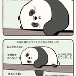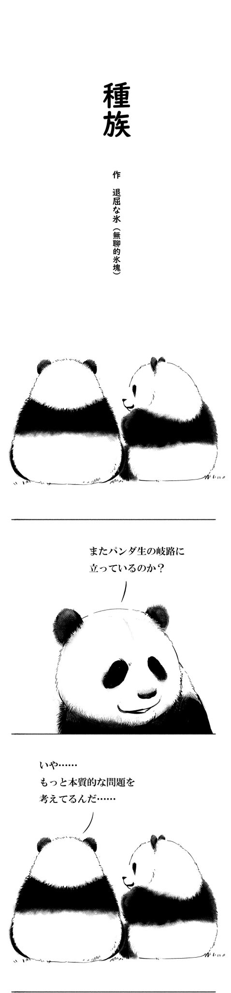 『早く動物を冷蔵庫に入れて』第6話『種族』 物思いに耽るパンダが再登場。後ろ姿に癒されますね。パンダは中国語で「熊猫」と言います。確かに熊そっくりの体型と猫に負けない可愛らしさを備えています。 1週間お疲れ様でした!良い週末を! #漫画が読めるハッシュタグ #中国漫画