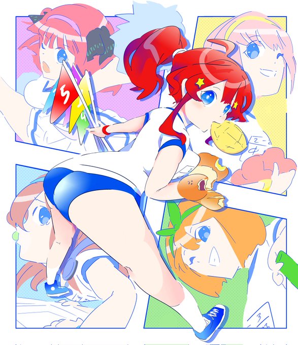 #中野家五つ子誕生日 #五等分の花嫁 #五等分の花嫁生誕祭 #アニメ好きな人と繋がりたい #絵描きさんと繋がたい #art #illustration #イラスト #フォロバ 運動会パン食い競走無双図 中野五月(水瀬いのり)一花(花澤香菜)二乃(竹達彩奈)三玖(伊藤美来)四葉(佐倉綾音) 不世出五つ子声優ユニット2023も万歳