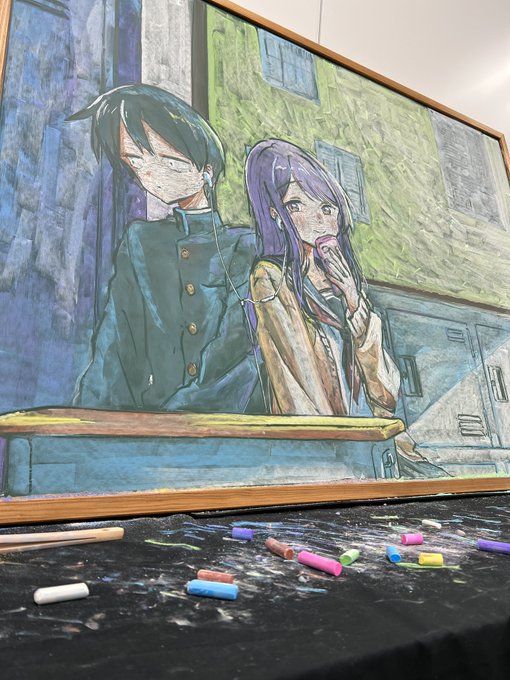 黒板アートを制作させていただきました。 久保さんは目にカラフルな光が。白石君の顔、汗には気がついていたのですが… 耳がほんの少し赤いのに気がついて、あの… 🙏 素敵なイメージビジュアル再現、大切に描かせていただきました。 ありがとうございました! #久保さん #久保さんは僕を許さない twitter.com/kubosan_anime/…
