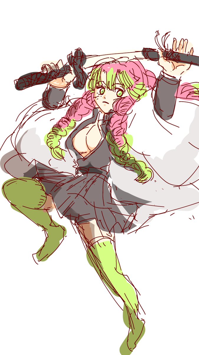 ぐんもー😊 今日も #15分でおはようイラスト #15minDrawing #鬼滅の刃 #甘露寺蜜璃 26日目のジャンプ抜刀みつりちゃん #絵描きさんと繋がりたい #イラスト #二次イラ