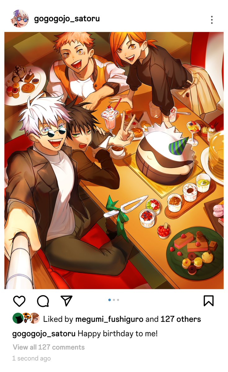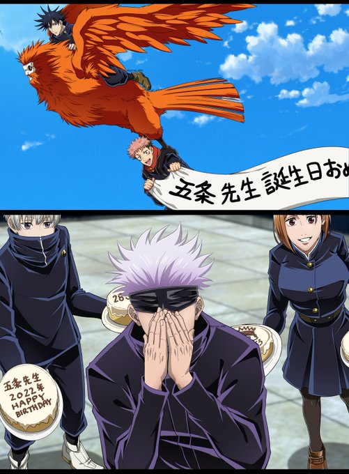 #五条悟生誕祭2022 #五条悟爆誕祭2022 #五条悟誕生祭2022 🎊🎉Happy Birthday Gojo!!🎉🎊 (gojo took many selfies with the gojo cake before megumi got tired of waiting and cut the cake in half)