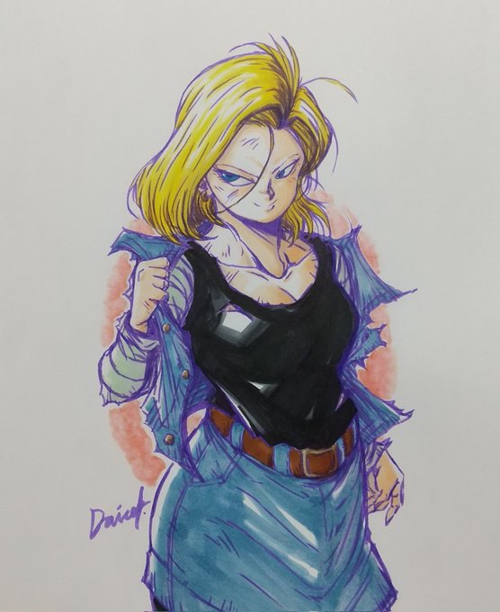 今日はいい18号さんの日💐 おとといの16号の4べぇは時間かかってますw 今回はかなり俺流の絵柄で描きました。ってか、直したいとこばっか!w #ドラゴンボール #DRAGONBALL #絵描きさんと繋がりたい #人造人間18号 #いい18号の日 #アナログイラスト #イラスト
