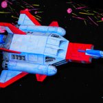 #今年作った模型晒そうぜ ほとんどの方が知らないと思いますが 今年一番最初に完成させたのはコアブースター 正面・真上の別方向から見ると場面が違う… という目論見で絵も描き貼りました🖌️ 山梨の展示会、コレ持って行けば良かったかな?😐 #筆塗り