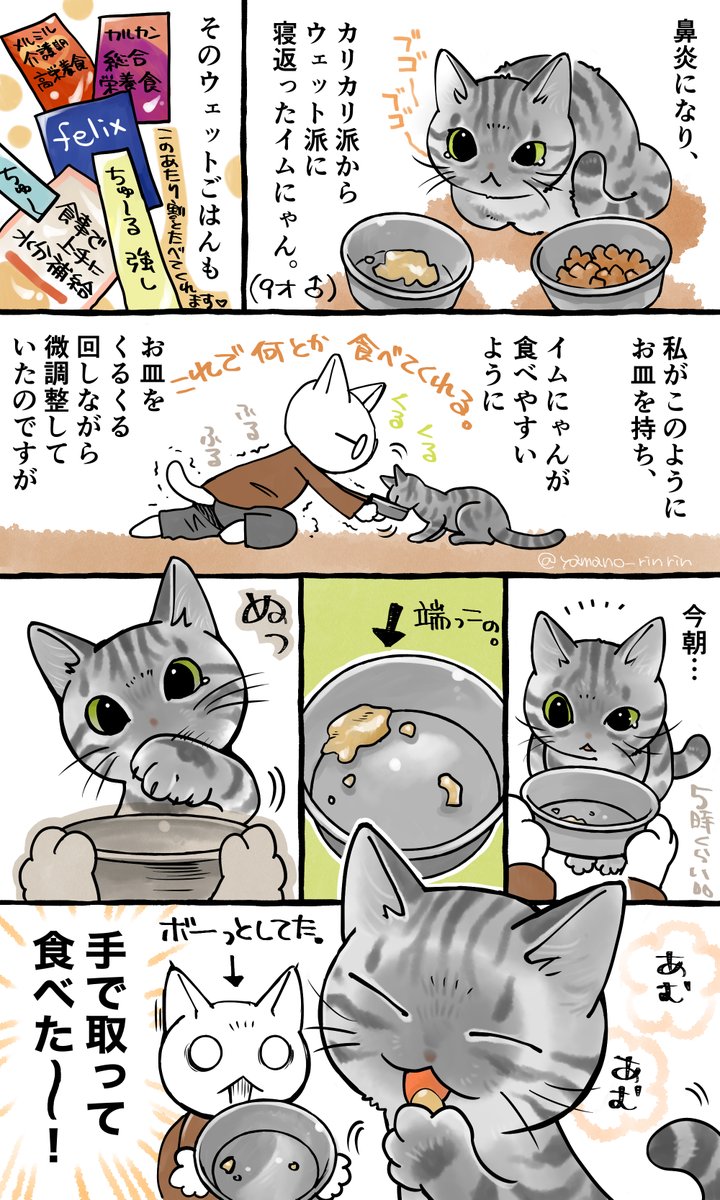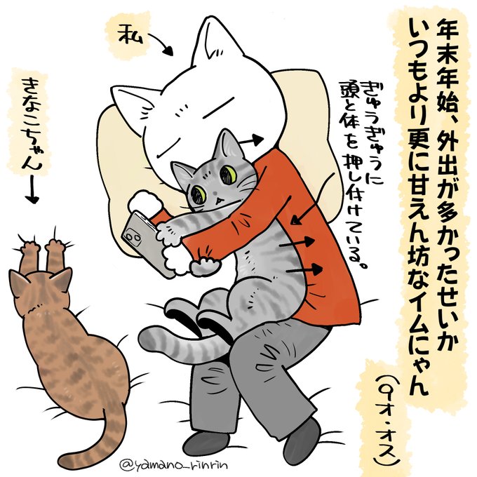 #今日の山野絵 #山野家登場犬猫紹介カード 4日目はイムにゃん🐈 ボランティアさん宅から譲り受けた彼、 子猫の頃から多くの猫さんに囲まれて育ったようです。 年下の4匹のお世話をする(してくれた)聖母(♂だけど)。 添い寝と毛繕いのプロ。 明日はきなこちゃん✨