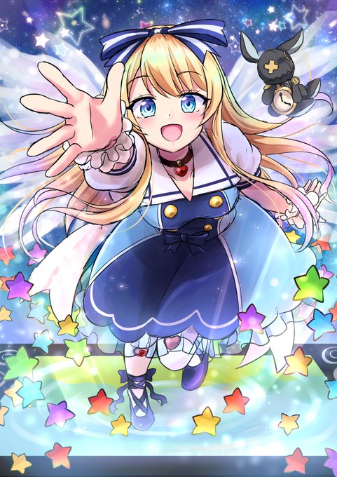 絵夢アリス社長(@EmuAlice )主催の #仮想の国のアリスイラコン に参加させて頂きます! 「私が思う仮想の国のアリス」とは、 光り輝く広大な世界で キラッキラの眩しい笑顔で 誰よりも高く自由に全力で翔ぶ 絵夢アリスさんそのものです🎀 無限の可能性と輝かしい未来を表現しました✨ #アリス回廊