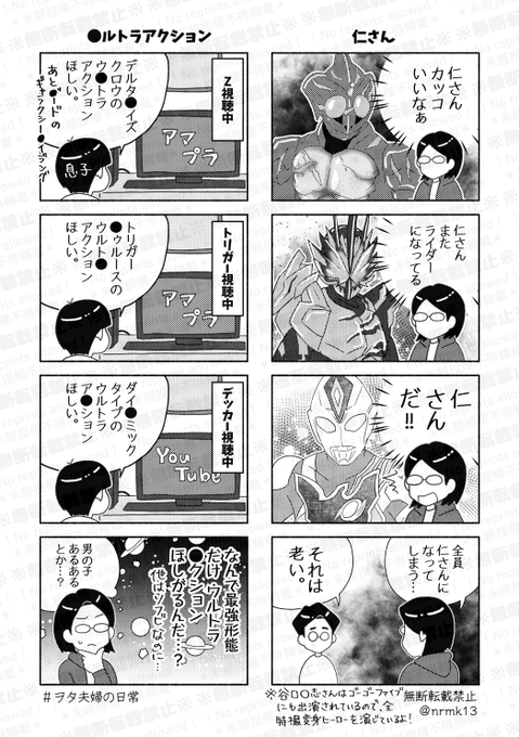 特撮ヒーローと男の子あるある? 老いには勝てない😇 #仮面ライダーアマゾンズ #ウルトラマンデッカー #ウルトラマン #仮面ライダー #ヲタ夫婦の日常 #漫画がよめるハッシュタグ #エッセイ漫画