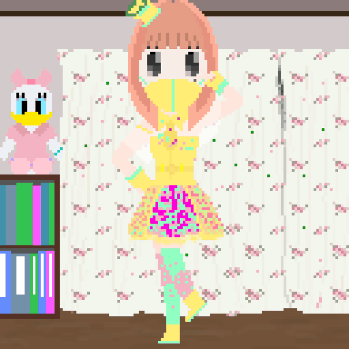 本日10月30日は #松田るか さんのお誕生日ですので2016年より放送の『#仮面ライダーエグゼイド』で演じられた #ポッピーピポパポ の衣装でろりめるさん(@rorimel_s2)を描いてみたおぅん! 松田るかさん2度目のコラボだYO! #365日365ろりめるドット絵 #137/365 #ドット絵 #東映